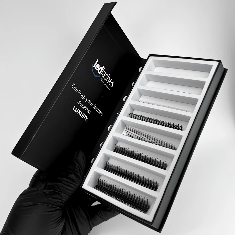 A LedLashes Strip Promade műszempillák a LedLashes prémium promade fanjait kínálják gazdaságos, 1000 fanos, ragasztócsíkra helyezett kiszerelésben.
