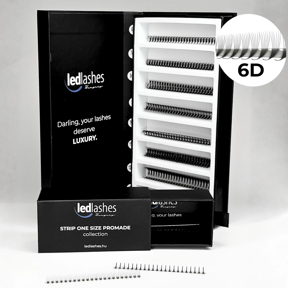 A LedLashes Strip Promade műszempillák a LedLashes prémium promade fanjait kínálják gazdaságos, 1000 fanos, ragasztócsíkra helyezett kiszerelésben.